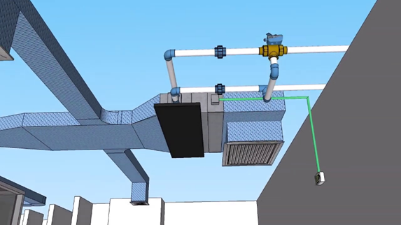 Desventaja: Requiere de un equipo adicional como un generador de calor o chiller para enviar el agua caliente o fría hacia el intercambiador de calor, necesita de un sistema de conductos para la inyección de aire acondicionado y de un cielo raso para ocultar las instalaciones. En general es una de las aplicaciones más costosas.