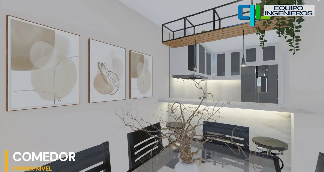 El diseño plantea las áreas sociales en el primer piso, integrando sala, comedor y cocina para generar mayor amplitud, mientras que los niveles superiores albergan los ambientes privados, garantizando confort y privacidad. Se incorporan soluciones que permiten una correcta iluminación y ventilación natural, optimizando la habitabilidad.